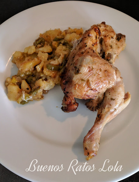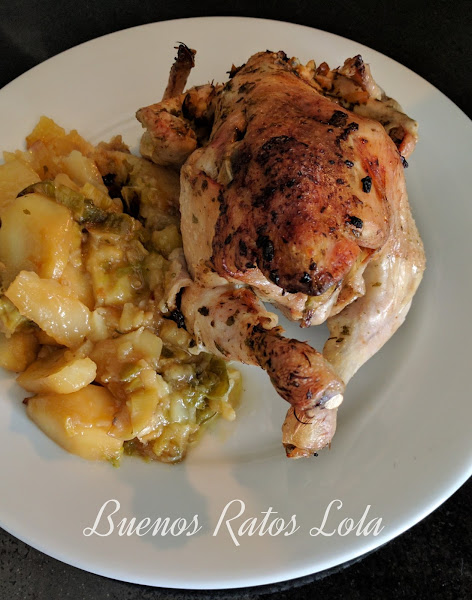 Quedan de lujo, tanto de sabor como de aspecto. Presenta un pollo o medio por comensal acompañado de las patatas a lo pobre. Espero que te animes y prepares esta receta