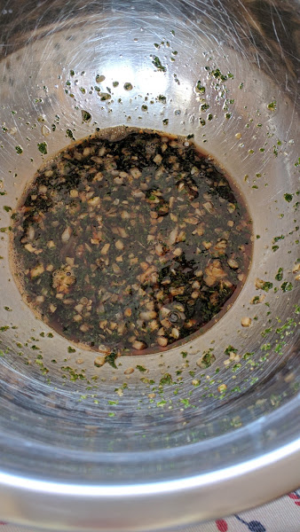 En un bol exprime medio limón, añade dos cucharaditas colmadas de ajo y otras dos de perejil, una cucharada de miel y dos de salsa de soja. Mezcla muy bien
