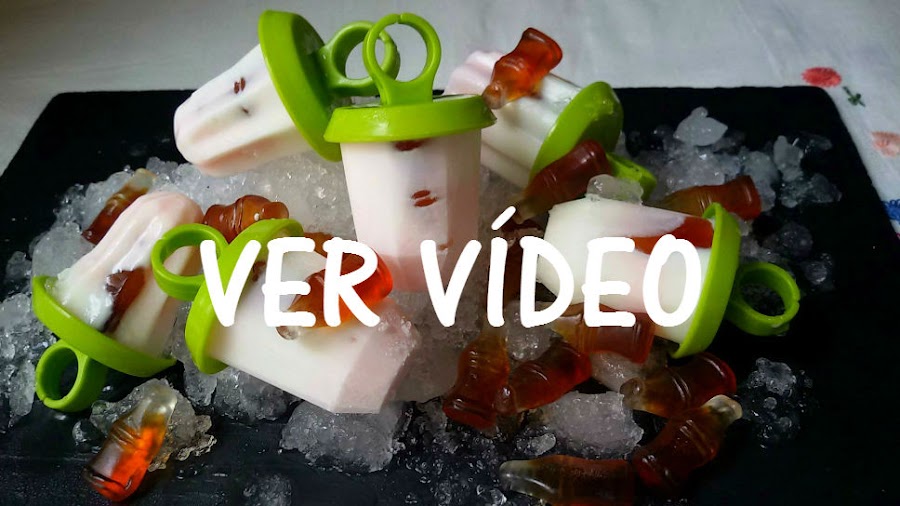 Los polos caseros son una opción buenísima para refrescarse cuando el calor aprieta. Los puedes preparar con zumos, batidos, y natillas o cremas de lo más variadas. Esta preparación que te traigo hoy, no la voy a llamar receta porque no hago más que juntar dos ingredientes como son el yogur y las gominolas en un recipiente y eso no requiere demasiadas habilidades. Sí, por el contrario, se trata de una buena idea para que los niños puedan disfrutar de un rico y nutritivo helado y dejar que hagan tantos viajes como quieran al congelador para refrescarse.