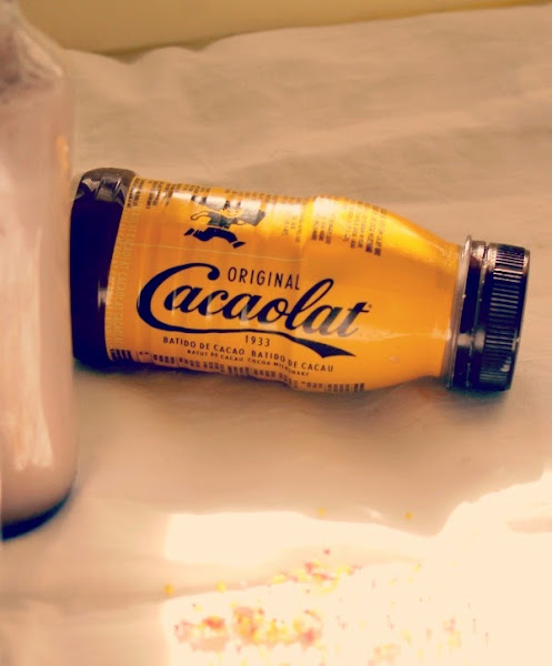 Añadimos el cacaolat y batimos hasta emulsionar el batido .