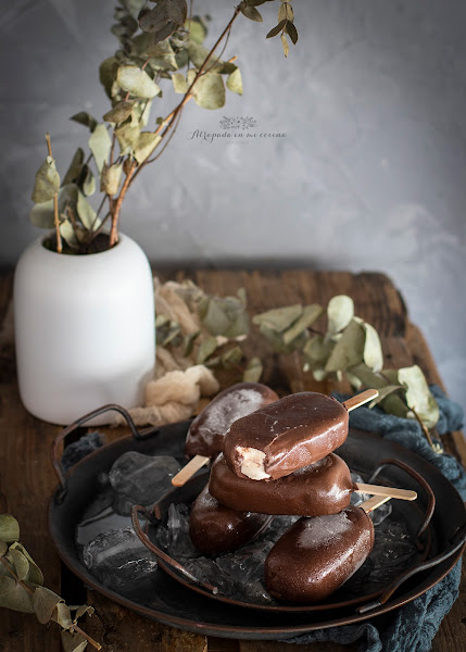 Este verano está siendo atípico en casi todos los sentidos, pero en la cocina seguimos con recetas veraniegas y refrescantes, porque por suerte el COVID19 no está afectando a nuestra forma de cocinar, ya bastante tenemos con haber cambiado tantas cosas en nuestra vida cotidiana.... Estos polos de chocolate tipo magnum se hacen en nada, no tiene más de 20 minutos de elaboración divididos en dos tiempos. Y, por supuesto, no tienen nada que envidarle a los comerciales, y si sois chocolateros triunfaréis porque la capa de chocolate sale mucho más gruesa que la comercial. Podéis hacerlos almendrados, aunque yo en esta ocasión los he preparado sin almendras, siempre han sido mis preferidos los de chocolate negro y nata (crema de leche), y estos son los más parecidos que he podido hacer. Para hacerlo tenéis que tener unos moldes de silicona con la forma de Magnum, en Amazon podéis encontrarlos, os dejo el enlace por si os animáis, sólo tenéis que pinchar en la foto y directamente os llevará al enlace de compra. Es un molde doble de dos que viene con los palitos de madera incluidos, podéis hacer cuatro de tirón, aunque con la receta que os enseño salen 6 y ahora os digo cómo hacerlo para os salgan los 6.