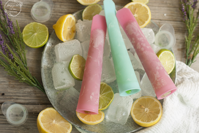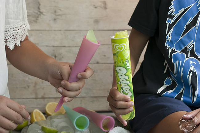 De pequeña mis polos favoritos eran los Calippos® de lima limón, siempre buscaba los kioskos de Frigo para comprarlos y resulta que a Hugo también le encantan, por lo que el otro día decidí prepararlos en casa para ver si podía seducir a mi hijo con algo que le guste hecho por mi, porque no hay manera, ya lo he repetido en muchas ocasiones, sólo le gustan mis galletas decoradas y los polvorones que le preparo por Navidad. Del resto muy poco, y me temo que con estos polos tampoco lo he seducido, se decanta por los originales, menos mal que a Laura si que le han gustado. Y es verdad que no son exactamente como los originales, son un poco más ácidos, pero son totalmente naturales, asi que si en vuestra casa gustan este tipo de polos probad a hacerlos, tienen muy pocas calorías y además son muy fáciles de hacer.
