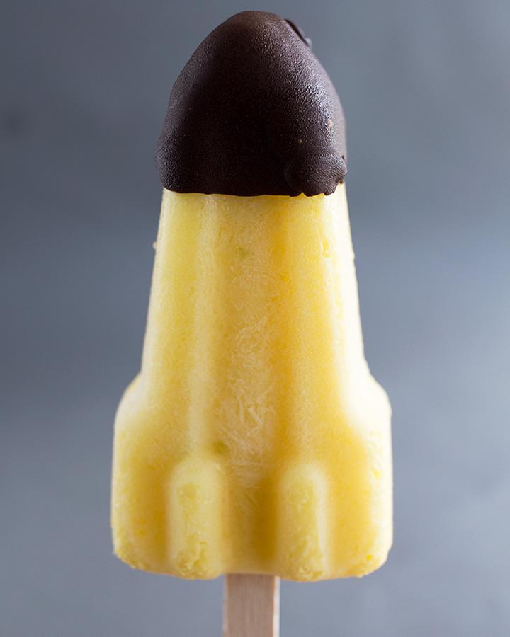 Polos de Mango y Chocolate con forma de colajet, vuelve a disfrutar de este helado en su versión más ligera y deliciosa.