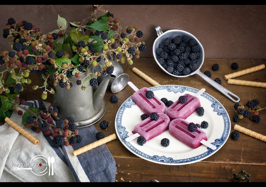 Cada año en septiembre hacemos un par de salidas al campo en busca de moras. Es una tradición. Nos preparamos unos bocadillos y unas botellas de agua y nos vestimos como si fuéramos de safari, pantalón y camisa de manga larga para protegernos de las espinas de las zarzas, porque a nosotras las moras que más nos gustan son las que están en lo más alto que suelen ser las más grandes. A pesar de ir tan preparadas, siempre volvemos a casa llenas de arañazos y picaduras de mosquitos, pero degustar unos polos con sabor a moras recién cogidas no tiene precio. Aunque si lo preferís podéis hacer un bizcocho de mora, una mermelada o un coulis que acompañará deliciosos platos.