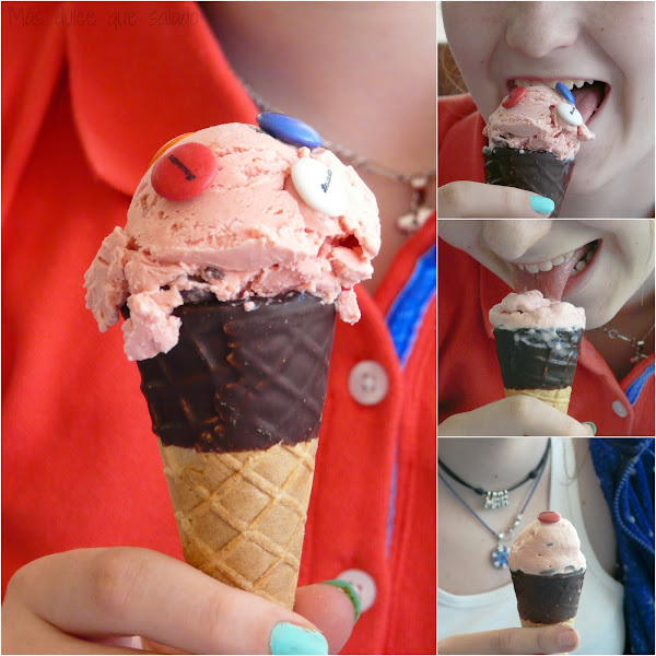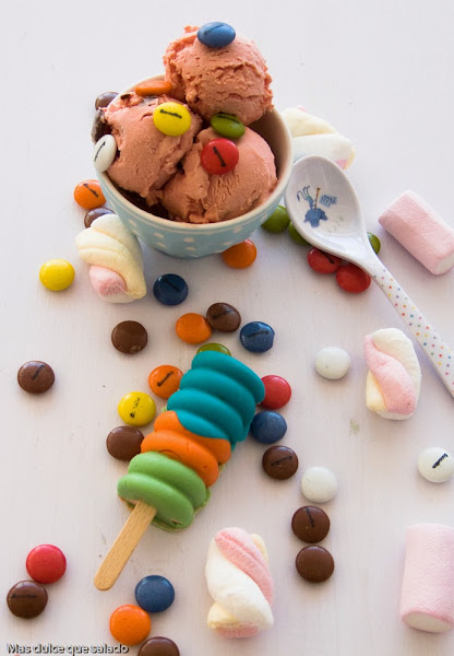 Eso sí, muy importante, no poner los lacasitos en la heladera a la vez que el helado porque entonces lo lacasitos perderán todo su color.