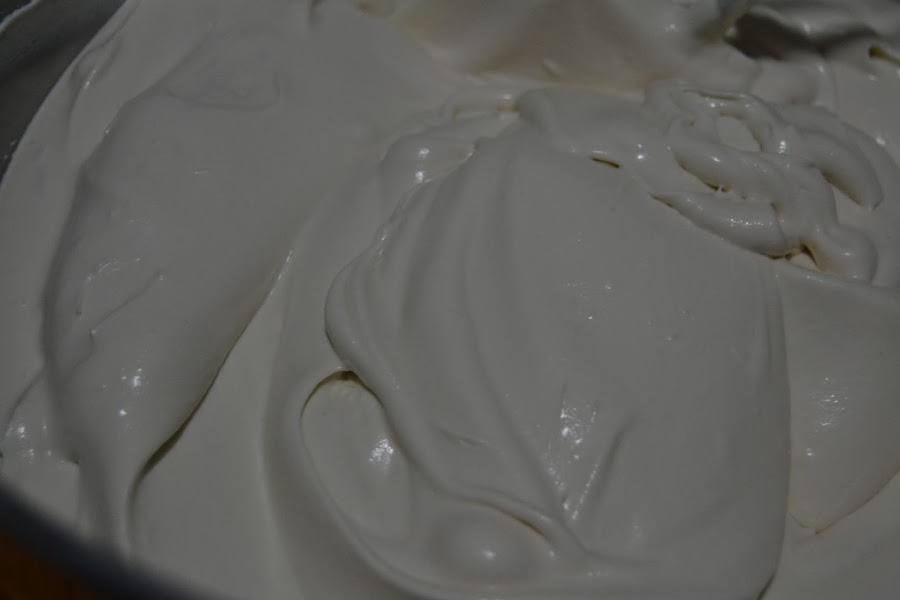Montamos la nata (crema de leche) y la añadimos con cuidado a la mezcla anterior.
