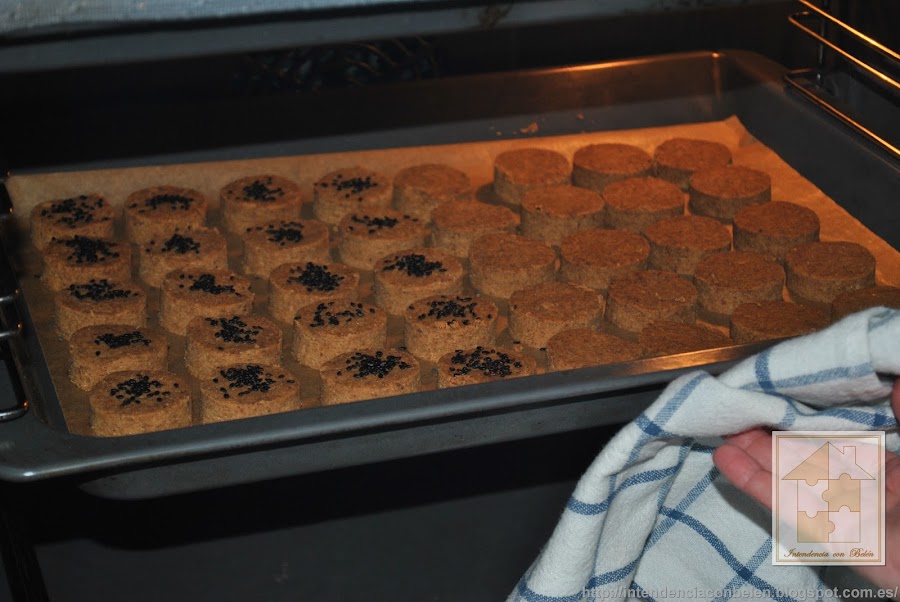 Yo en algunos de ellos he espolvoreado unas semillas de sésamo, aunque luego los espolvorearé de azúcar y en algunos pondré unas almendras picadas. Ya dependerá de cada uno.