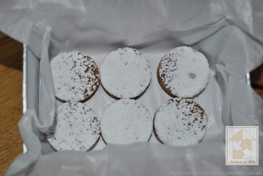 Ya están listos nuestros polvorones. Si queréis tener un detalle con algún amigo, los podéis poner en una cajita envueltos en papel de seda y añadir una felicitación.