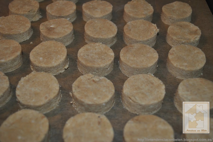 Cuando los tenemos listos, los llevamos al frigorífico durante al menos 1 hora, de esta forma al hornearlos no perderán la forma. Precalentamos el horno a 180º y los metemos con cuidado durante 10-12minutos, dependerá de vuestro horno.