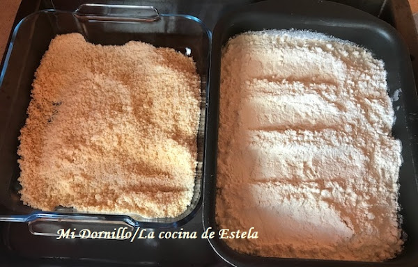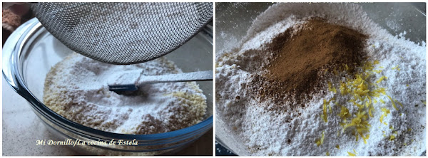 Cuando empiecen a dorarse sacarlas, a mi se me hiso antes las avellanas y almendras que la harina, esta la tuve 15 min más removiendo con el tenedor de vez en cuando. Cuando cambie de color, sacar y dejar que enfríen del todo.(Depende de cada horno) La harina y el azúcar la tamizamos para que no se queden grumos.