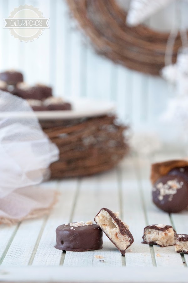 Por ponerles alguna peguita (peor que mi hermanita estoy oigan, jajaja), los haría un poco más grandes, más polvorón y menos cocholate, que a mi me encanta que se me llene la boca con el polvorón y ¡ni me atraganto ni ná!