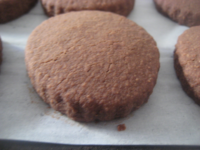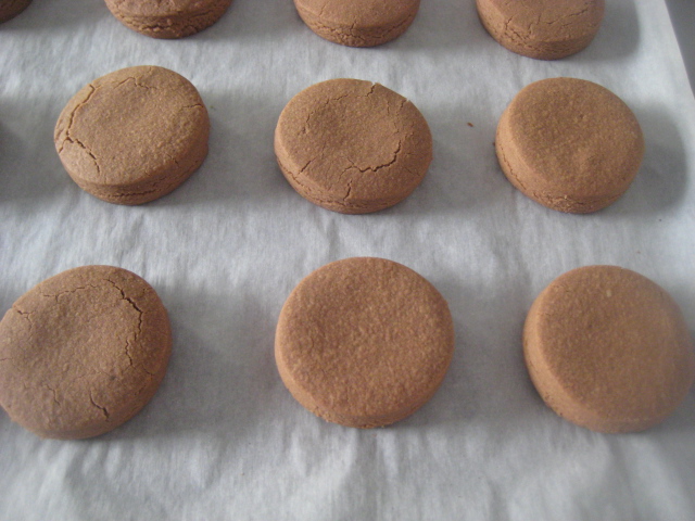 Preparación: Secar y tostar ligeramente la harina en el horno a 180º C unos 20 minutos, hasta que veamos que adquiere un color ligeramente tostado. Sacar la bandeja y dejar enfriar por completo. En un bol ponemos la harina tostada, las almendras molidas, la manteca de cerdo ablandada, el azúcar glas, el cacao en polvo y la sal. Mezclar a mano o con amasadora con el accesorio de pala. Tarda un poco en unirse, porque la manteca necesita su tiempo para empapar los sólidos. Una vez obtenida la masa ponerla entre dos papeles de horno y estirar con rodillo para dejarla de 1,5 cm. de grosor Dejar reposar un poco en lugar fresco para que tome cuerpo. Una vez ligeramente endurecida cortar los polvorones con un cortador redondo de 3,5-4 cm, que iremos poniendo en bandejas de horno con papel de hornear. Ponemos los polvorones en una bandeja de horno y los cocemos a 190ºC durante 12-15 minutos, hasta que huelan a hechos Hay que tener cuidado porque el color dificulta un poco saber si están hechos. Una vez hechos, sacamos los polvorones a una rejilla sin quitarlos del papel porque en caliente están muy blandos y se rompen. Se van endureciendo al enfriarse. Una vez fríos cubrir con azúcar glas y envolver en papel apropiado.