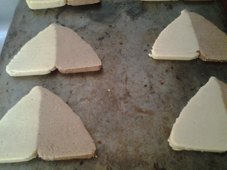 Forma con las masas dos cilindros de 20 cm cada uno, barnizalos por uno de sus extremos con el huevo y junta las dos partes formando un triángulo.