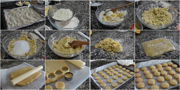 Pasamos la masa de los polvorones de naranja muy fáciles a la mesa enharinada y tan solo tenemos que compactar, no amasar.