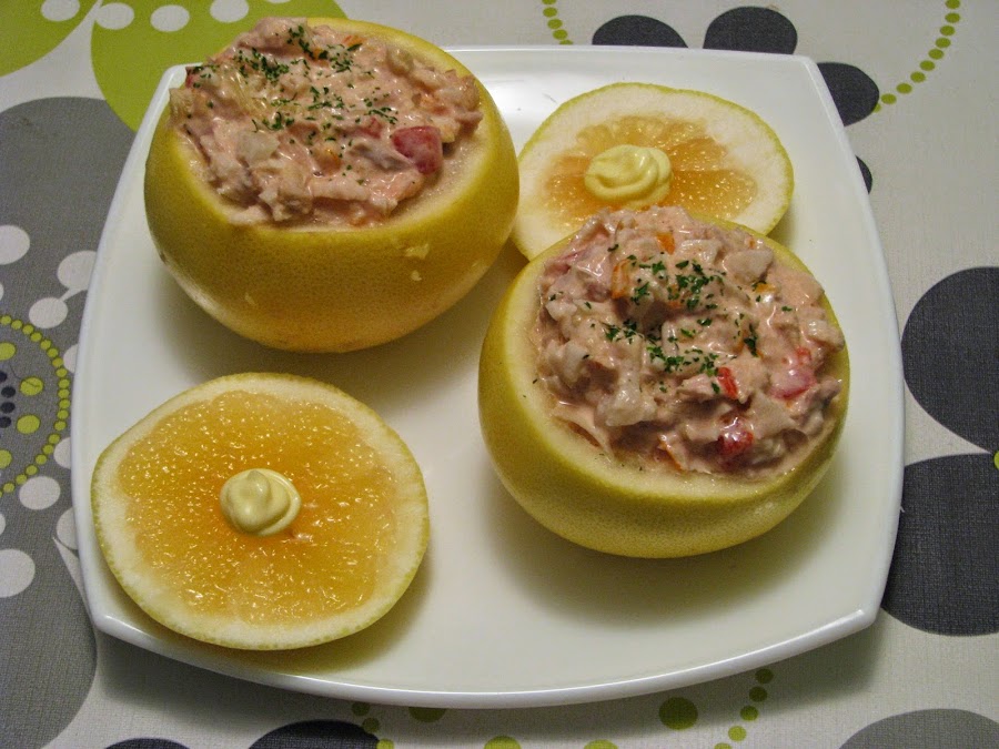 *Truco: con la pulpa que nos ha sobrado del otro pomelo puedes hacer un zumo y verter un poco sobre la mezcla para que coja más sabor, sino, puedes tomarlo solo mientras preparas la receta :-)