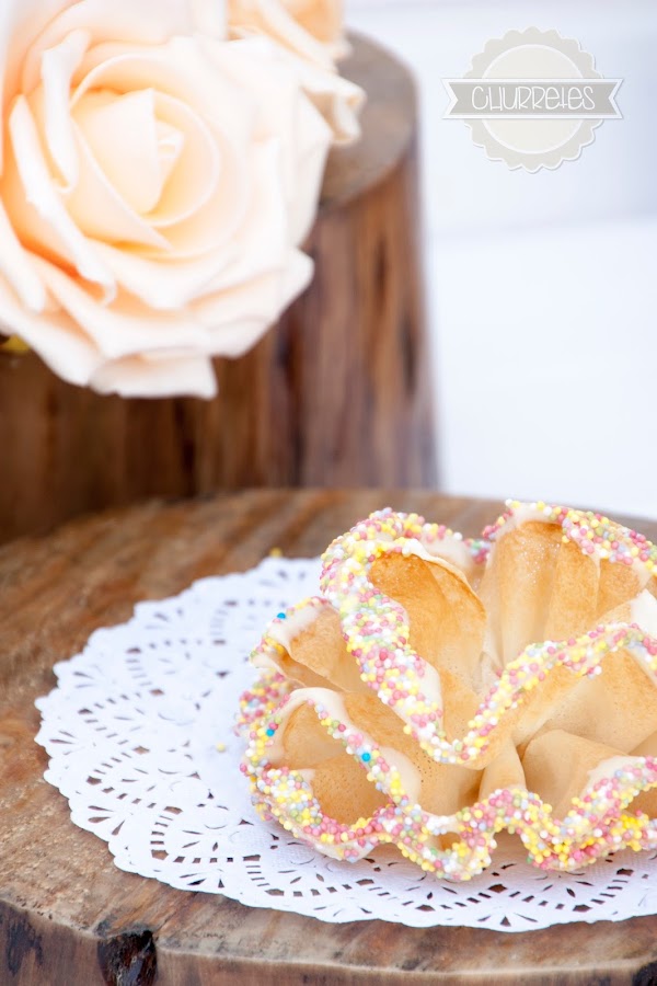Preparar 2 cuencos, uno con el cocholate derretido y otro con las bolitas de colores.