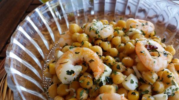 Preparación:Si los garbanzos son de bote (ojo, una marca de confianza y que sepamos que están buenos, por que es la base de la ensalada!), los aclaramos con abundante agua y dejamos que escurran el excedente de líquido con la ayuda de un escurridor.