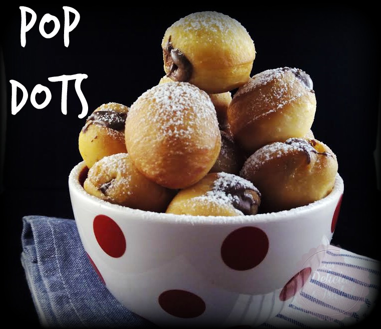 Llenamos una jeringuilla con la crema de cacao un poco caliente y rellenamos los pop dots. Podemos dejarlos así, pasarlos por una glasa de agua y azúcar glas o rebozarlos en azúcar, como más os gusten.