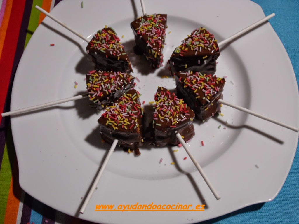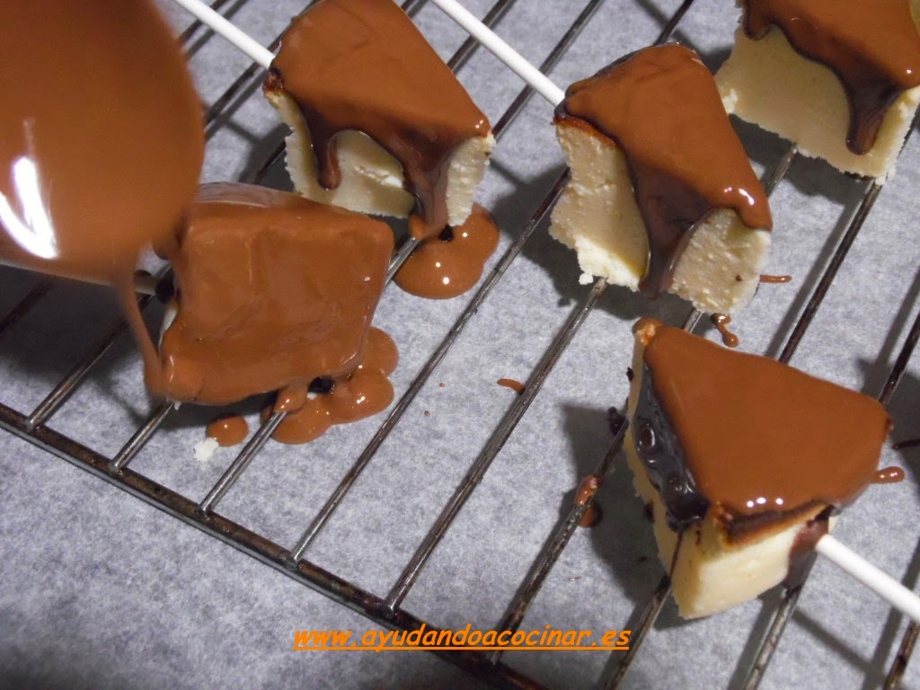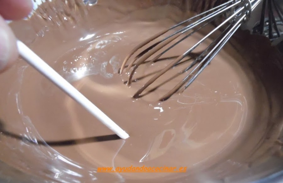 Colocarlos en una rejilla, dejar que se solidifique el chocolate para que el palito quede bien sujeto