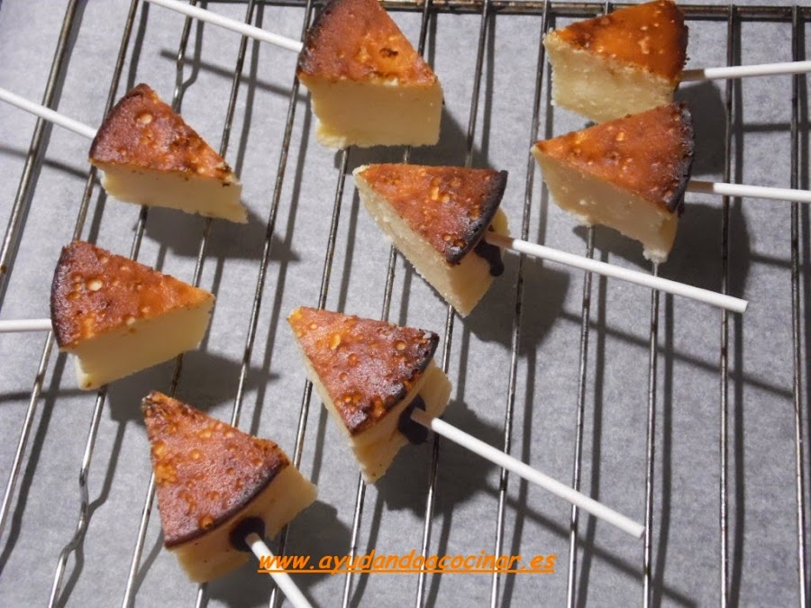 Pinchar el palito en la parte de atrás de cada una de las porciones de tarta de queso