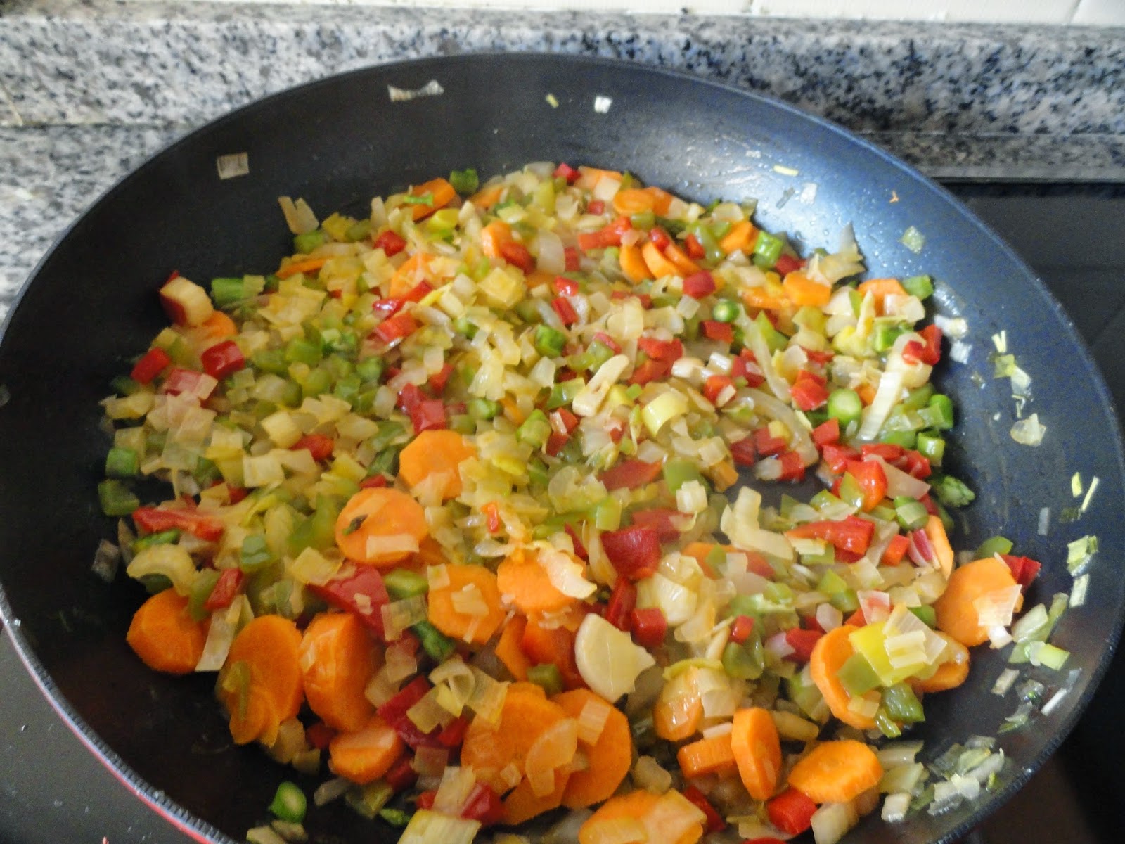salEs tan sencillo como pochar toda la verdura picada en trozos pequeños, dejar que se haga a fuego lento. Agregamos sal.