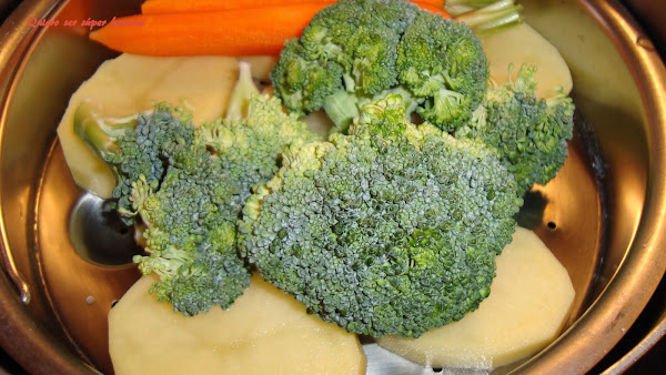 Para cocinar los vegetales para este plato he utilizado el vapor. Conservan mucho más el color y el sabor. Si es de vuestro gusto podéis caramelizar las zanahorias con un poco de mantequilla.