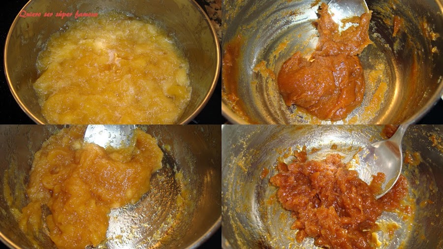 He ido añadiendo gotas de agua y reduciendo las manzanas, a medida se iba cociendo, porque he querido conseguir una textura como la del membrillo, pero podéis hacerla a vuestro gusto.