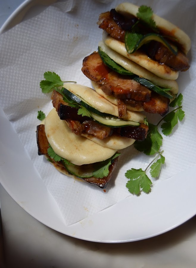 Es muy probable que a estas alturas ya sepáis de que va la historia de los Pork Buns. Son unos bocadillos de pan al vapor, blando y esponjoso rellenos de panceta de cerdo horneada a fuego lento y acompañada de encurtidos, salsa hoisin y cilantro. Así contado tampoco parece un bocadillo muy actual, algunos pensarán que la panceta es muy 1800, y a mi tampoco me interesaban en absoluto hasta que me compré dos libros de cocina estupendos, "Comfort food" de Jamie Oliver y "Simply Nigella" de Nigella Lawson, que tenían en común la receta de los Pork Buns.