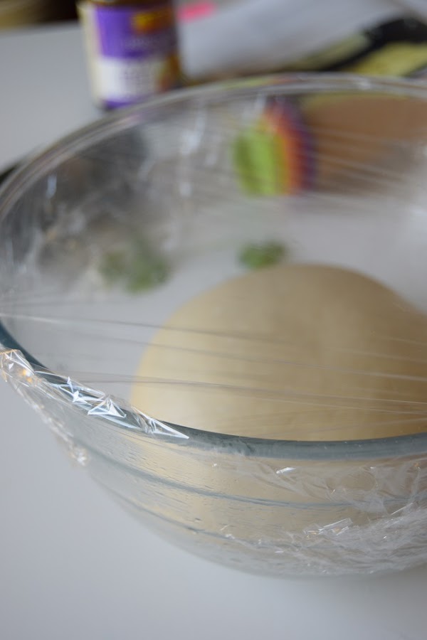 7. Deja que las pelotas reposen y leven durante 30 minutos cubiertas con plástico film.