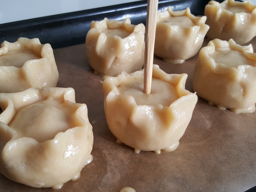 10. - Batimos un huevo y pincelamos bien todos los pasteles, incluidos los lados.