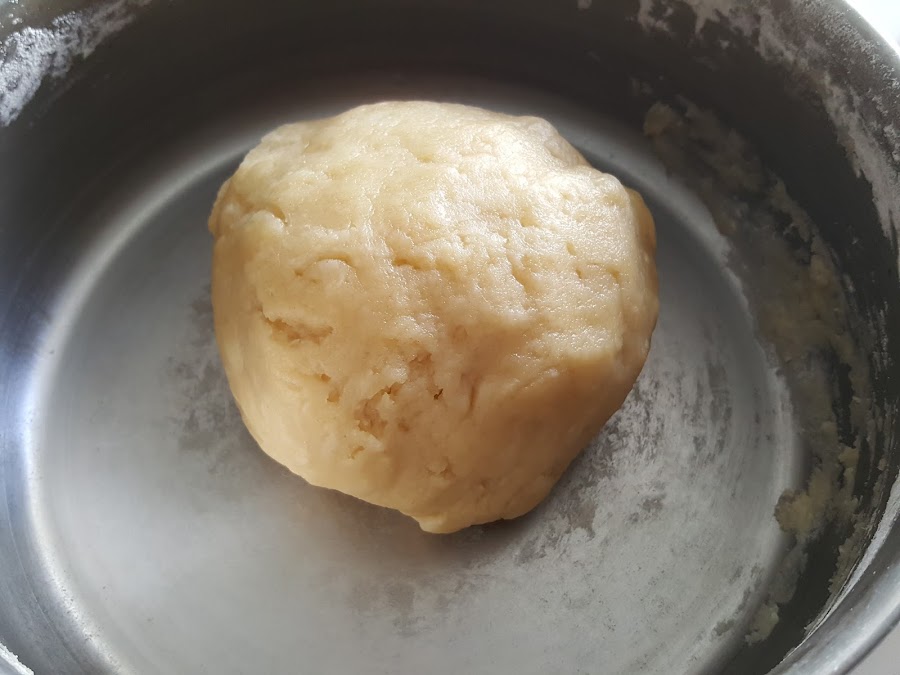 4. - Removemos bien hasta que se despegue de las paredes y amasamos hasta que quede una bola de masa.