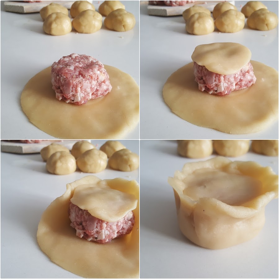 9. - Yo le he ido dando pellizcos, y así toman la forma parecida a la original. Y así repetiremos hasta hacer los 20 pork pies.