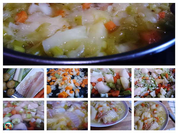 Consejo: este guiso también lo puedes hacer en vísperas y te queda más sabroso. No lleva mucho trabajo, ni muchos ingredientes. El sabor del plato lo aporta las verduras cocinadas a fuego medio. Así que evitamos añadirle cualquier pasta química que le robe el sabor, como son las pastas de caldo. Después de probar el guiso,creo que le va bien: la merluza, perca, las gambas, mejillones. Así como; unos muslos de pollo, solomillo de cerdo o alguna chuleta de cerdo.
