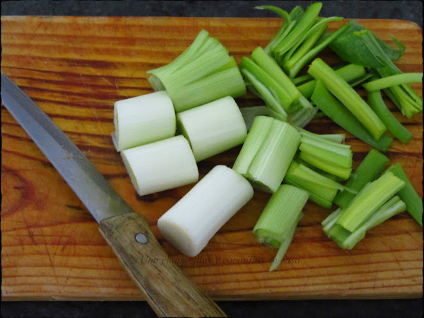 Limpiar bien de tierra sobre todo la parte verde, cortar en trozos grandes.