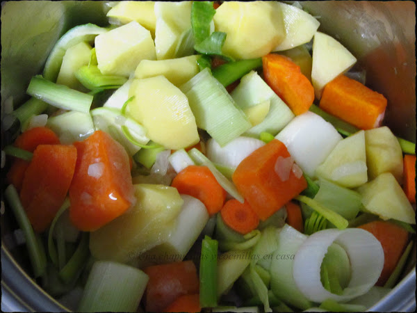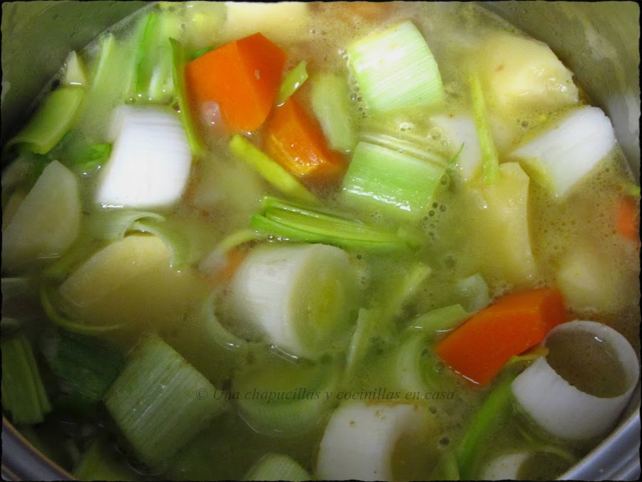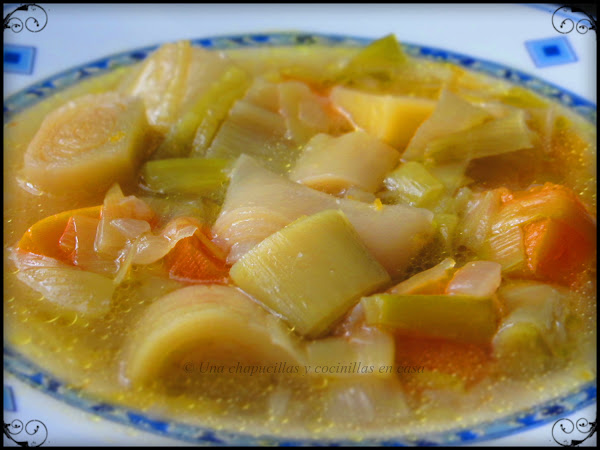 Su ingrediente principal es el puerro cortado en grandes trozos pero se suele añadir también zanahorias, cebolla o calabaza, en Bizkaia también se acostumbra añadir bacalao desmigado.