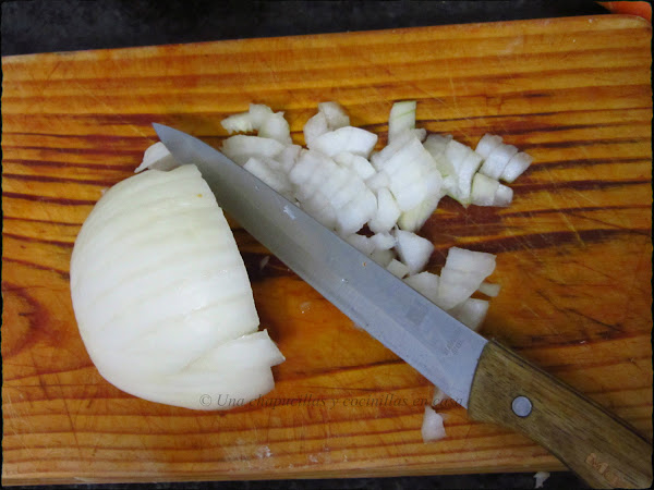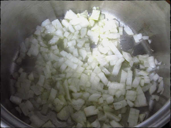 En una cazuela poner a calentar un chorro de aceite y saltear la cebolla.