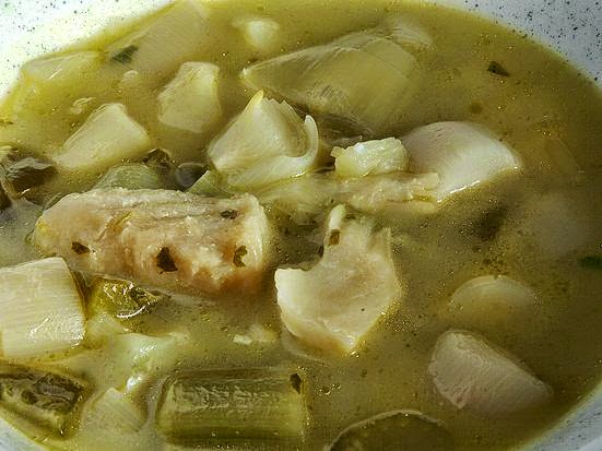 X-NONE X-NONE Plato de origen vasco o vasco navarro, la porrusalda, cuya traducción literal del euskera es caldo de puerro, consiste en una especie de sopa o estofado caldoso a base de verduras entre las que predomina el puerro, y parece que en su origen era sencillamente un caldo de puerros y patatas al que se añadía algún trozo de pescado para darle sabor. Como tantas otras recetas de la cocina tradicional, la porrusalda fue evolucionando, adaptándose a las disponibilidades de cada lugar y de cada despensa y a la imaginación de cada cocinero. Así, podemos encontrar auténticasporrusaldas con o sin zanahorias, con o sin calabaza, con costillas de cerdo, con cabeza de merluza, con butifarra... Y desde luego con bacalao, que es como vamos a prepararla hoy. Es un plato ideal para esta época del año, ligero, nutritivo, reconstituyente. Y económico. (En alguna parte he leído que no es necesario utilizar bacalao de gran calidad, alegando no sé qué extrañas razones de sabor. Me parece un error. La cantidad de bacalao necesaria para una buena porrusalda no encarece esta receta, el resto de cuyos ingredientes son realmente baratos. Use un buen bacalao y no se arrepentirá.)