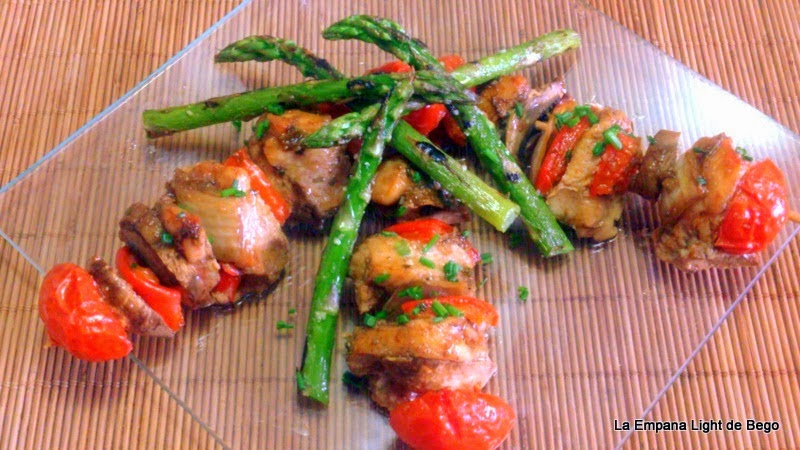 Bego de la La Empana Ligth nos ha preparado unas brochetas de pollo de escándalo. Con un adobo a base de leche y especias afrodisíacas como el jenjibre y la canela. Puedes seguir sus recetas en su página de facebook. Vale la pena hacerse seguidor suyo porque tiene unas recetas maravillosas.
