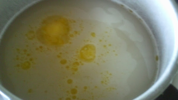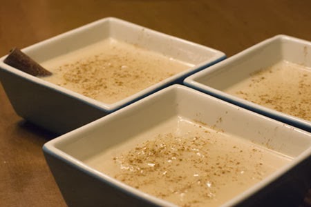 Poner al fuego un poco de agua o leche con clavos y canela, acá use canela en polvo. Colar el agua