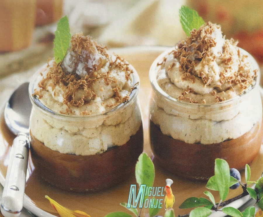 Postre de chocolate con café y nata (crema de leche) ,historia: