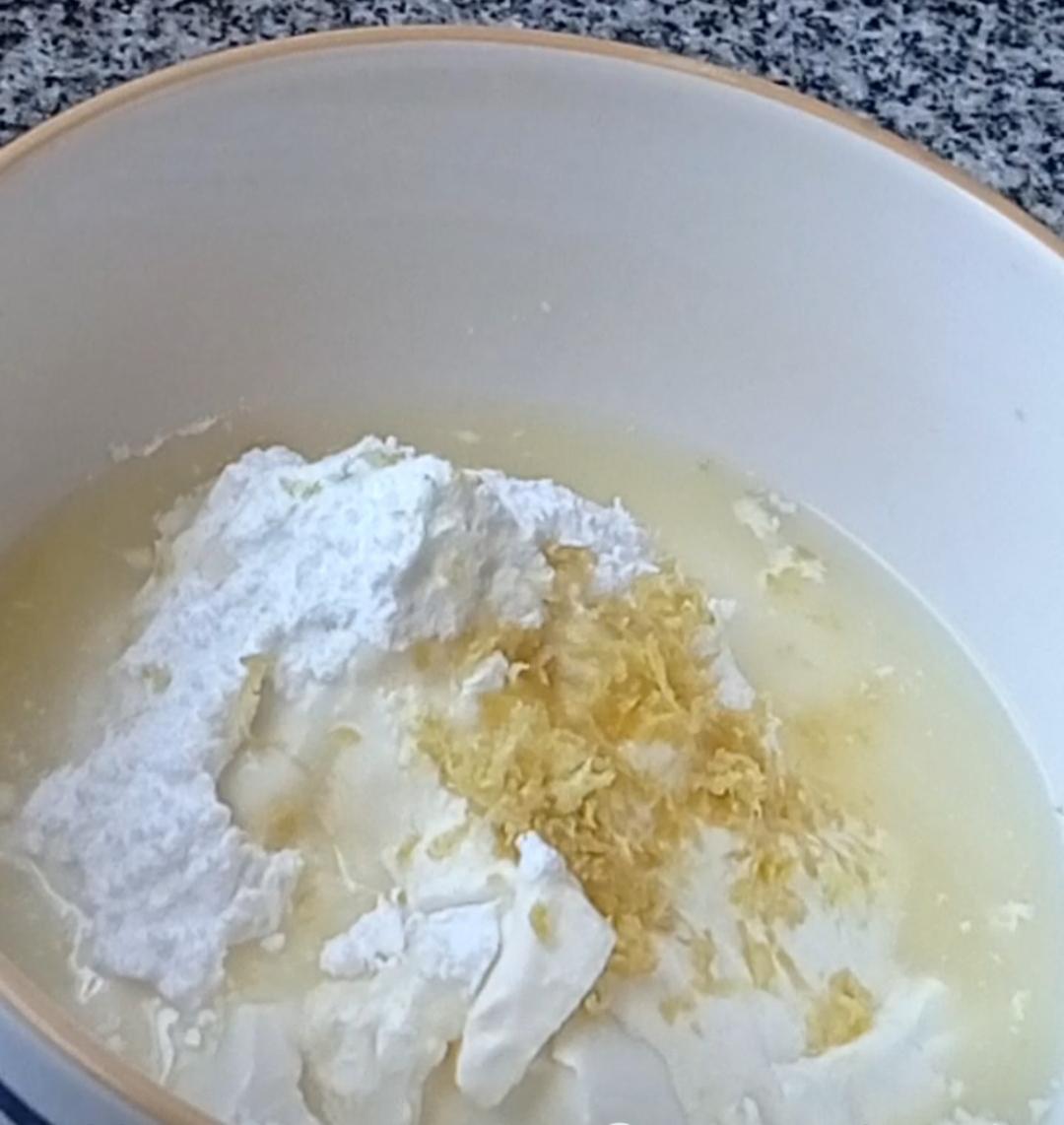 1- Mezclar el queso crema, con el azúcar , el jugo de limon y la ralladura.