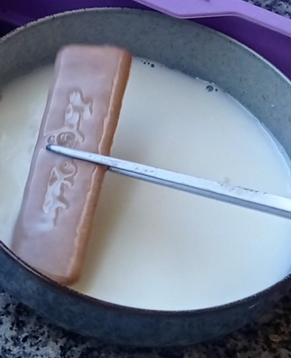 5- Pasar cada galleta por la leche y cubrir la base del molde