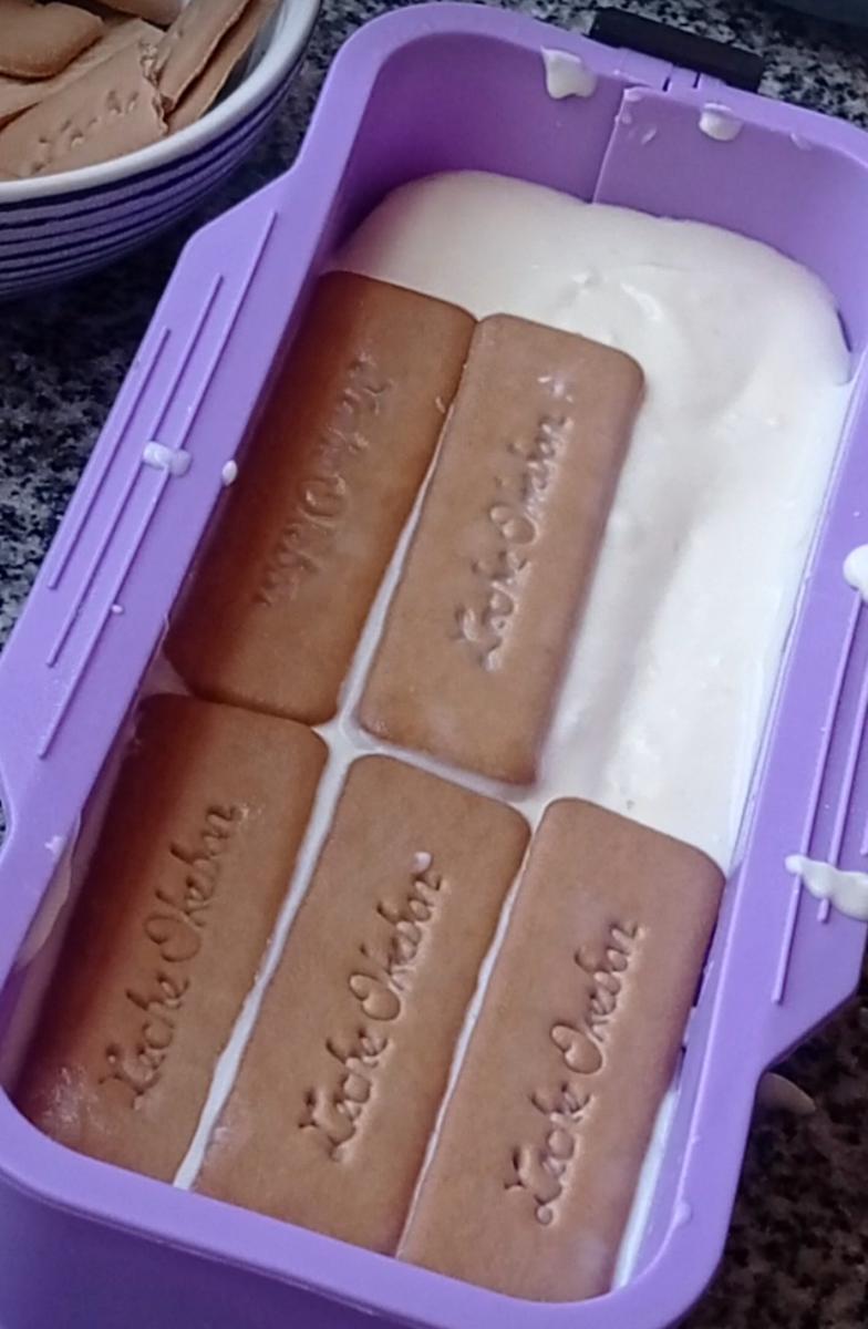 7- Seguir con otra capa de galletas mojadas y luego la crema y así hasta terminar.