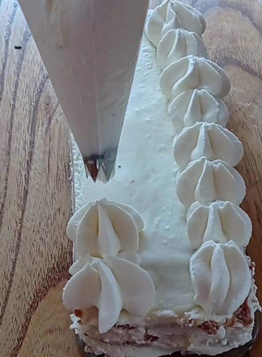 10- Poner la crema en una manga y hacer picos para adornar.