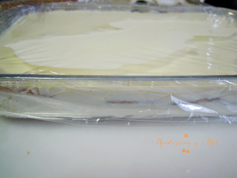 Deja que se enfríe bien tapado en la nevera durante al menos 3 horas, aunque cuantas más horas mejor consistencia tendrá la tarta.