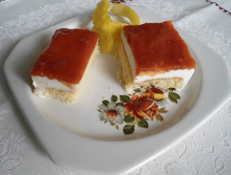 Exprimir el limón y calentar el zumo, se añade la gelatina escurrida que previamente hemos tenido en agua y el dulce de membrillo todo se mezcla (lo he triturado con el minipimer para que no queden trocitos) se reparte sobre la capa de queso, se vuelve a dejar en la nevera un par de horas.