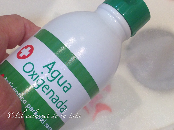 aplicaremos sobre la mancha un buen chorro de agua oxigenada