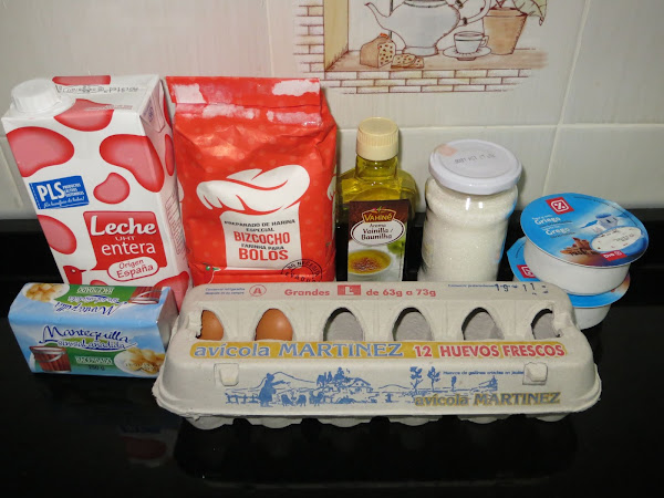 Lo primero que hacemos es batir los huevos, el azúcar, los yogures, la leche y la esencia de vainilla. Mientras tanto derretimos la mantequilla en el microondas y dejamos que se enfríe.