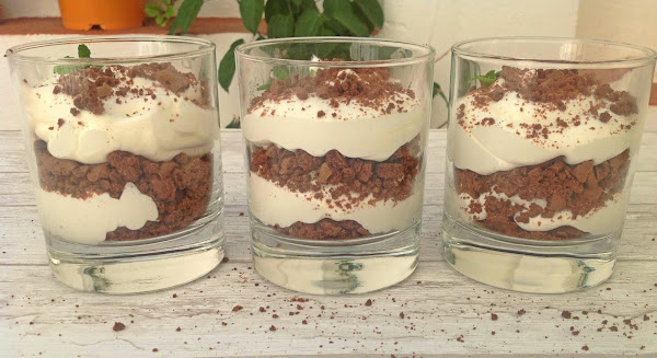 Repetimos la operación y por último decoramos espolvoreando un poco de galletas molidas por encima de la crema.