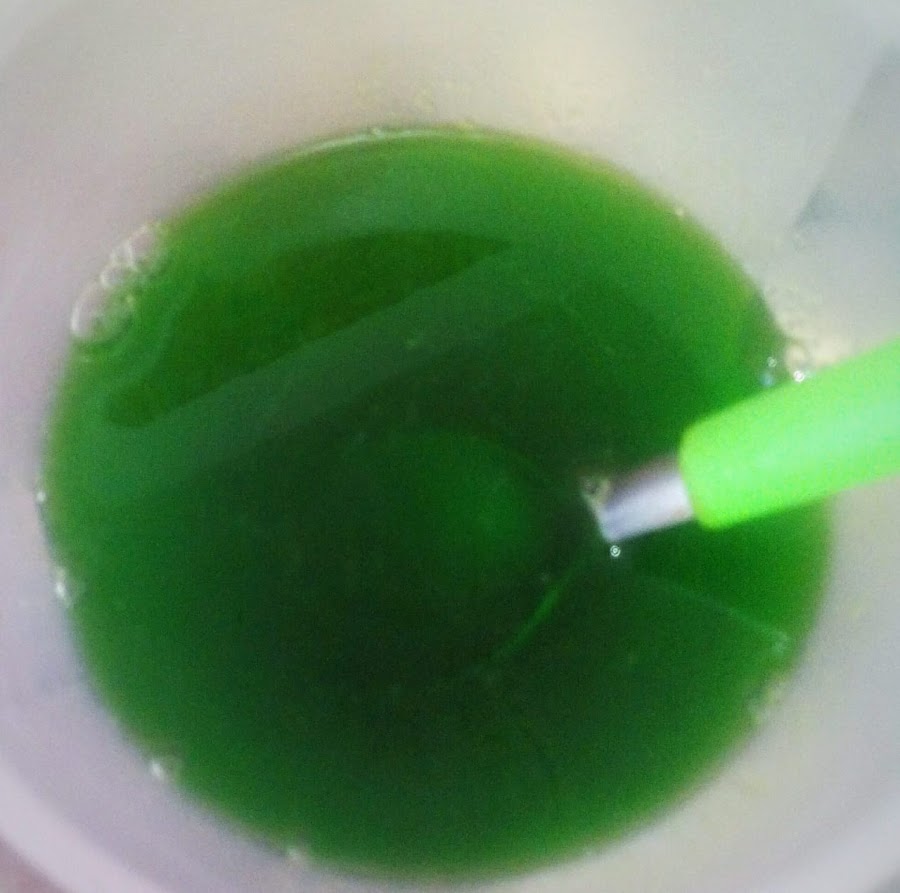 2. Disolver el sobre de gelatina de limón en la taza de agua caliente